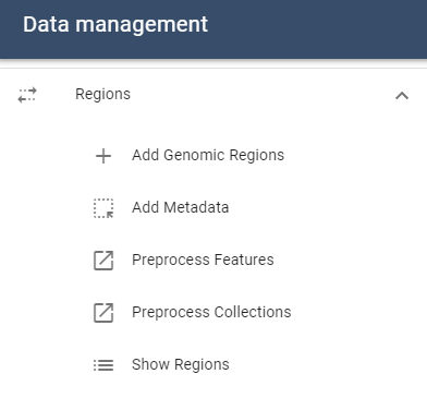 Depending on whether you want to submit a task for features or collections (see here for more details), click either Preprocess Features or Preprocess Collections in the data management drawer: