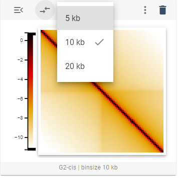 To change the genomic resolution at which you want to look at the data, you can select the desired binsize from the binsize dropdown at the top of each widget.